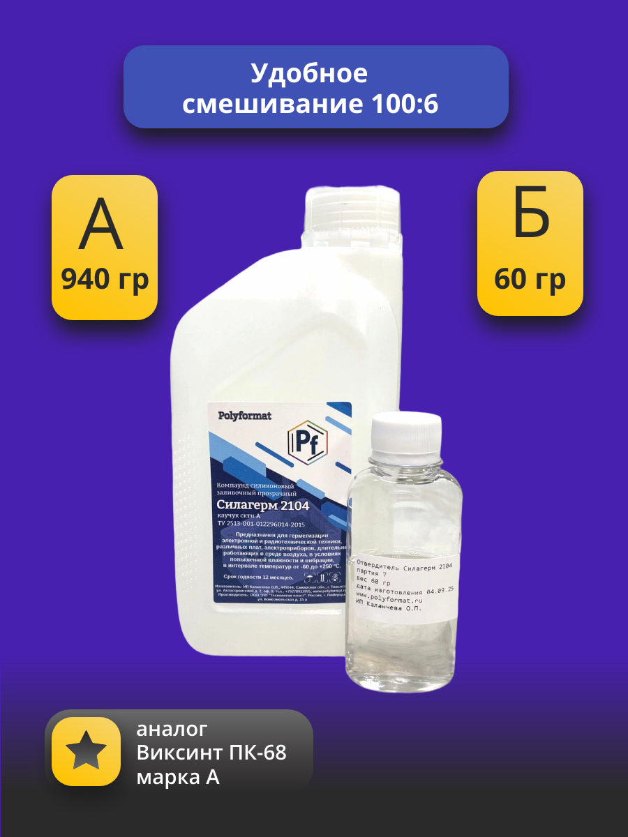 Компаунд Силагерм 2104 (аналог Виксинт ПК-68) предназначен для защиты изделий электронной и радиотехнической техники, различных плат, солнечных батарей и т.п. длительно работающих в среде воздуха и в условиях повышенной влажности в интервале температур от минус 60 ºС до плюс 250 ºС.